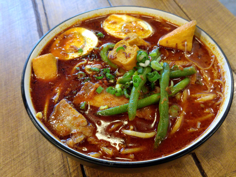 curry soup base with boiled egg, fine beans and tofu puffs